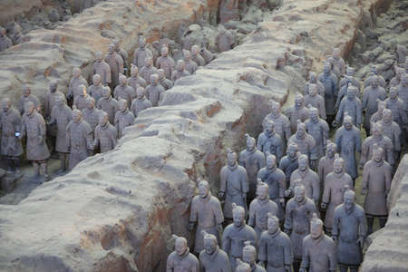 Terracotta Army, excavated terracotta sculptures depicting the armies of the first Emperor of unified China Qin Shi Huang at his burial place in Xian, China