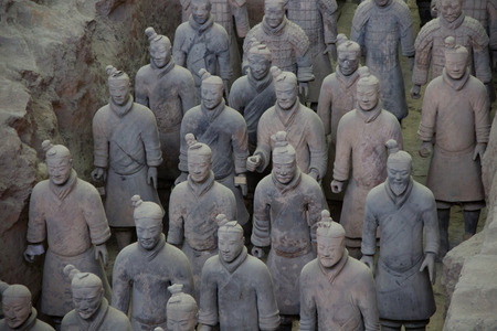 XI'AN, CHINA - MARCH 24, 2014: Terracotta Army is a collection of terracotta sculptures depicting the armies of Qin Shi Huang, the first Emperor of China. 210-209 BC