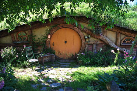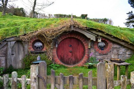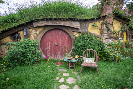 MATAMATA, NEW ZEALAND - APRIL 2, 2016: Movie set for the Lord of The Rings and The Hobbit. Bilbo Baggins house.