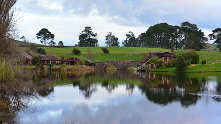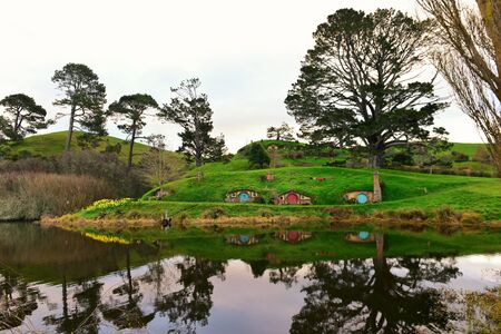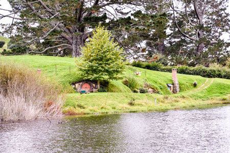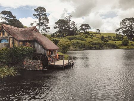 MATAMATA, NEW ZEALAND - DECEMBER, 2018: House by the lake in Hobbiton village