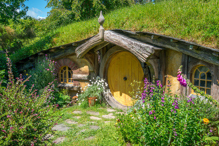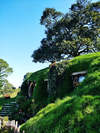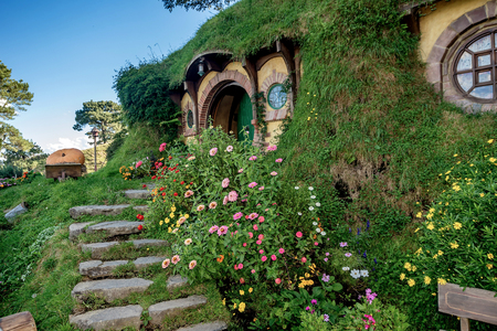 MATAMATA, NEW ZEALAND - AUGUST 2017: A house in Hobbiton movie set featured in Lord of the Rings and Hobbit movies on August 27, 2017 in Matamata