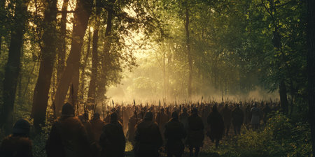 A mystical trail leads through a dense forest, illuminated by soft morning light and surrounded by greenery.