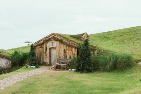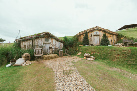 Matamata, New Zealand - June 07, 2017: Hobbiton, a movie set created for the filming of the Lord of the Rings and The Hobbit movies.