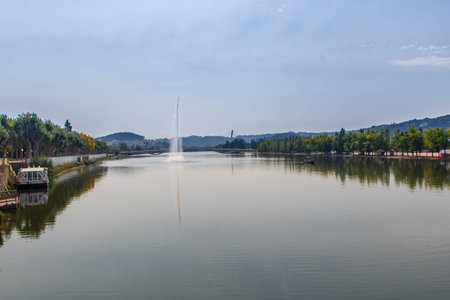 Reflection of the city on the water in the lake, natural landscape,Yunnn,China