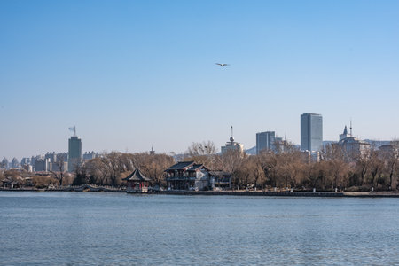 Landscape view of a lake in a park in Beijing, China