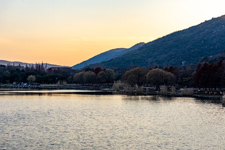 NANJING, CHINA - NOVEMBER 09: Scenic view of Xuanwu Lake, a popular travel destination on November 09, 2019 in Nanjing