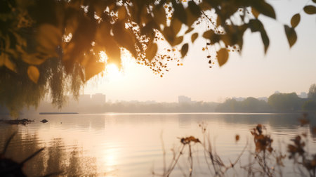 Beautiful view of the lake and cityscape in the morning.