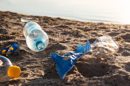 Environmental pollution and disposable plastic bottle on beach
