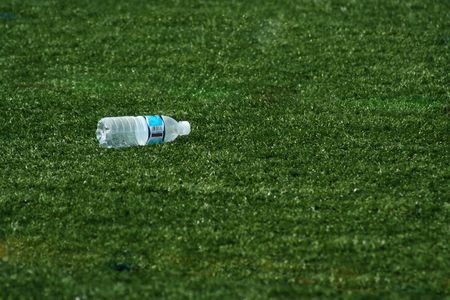 A Empty water bottle on green grass