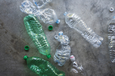 Plastic water bottles. Recycled waste recycling bottles.