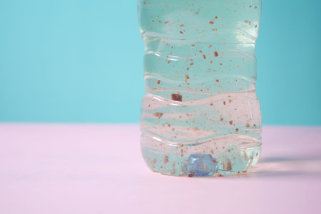 dirty bottle of water on table