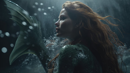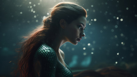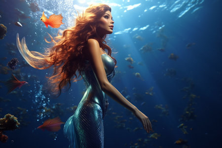 Beautiful mermaid in deep blue sea. Fantasy and imagination.