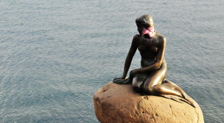COPENHAGEN, DENMARK - JUNE 11: Mermaid statue in Copenhagen, Denmark, which is tourist attraction is build in 1913, based on the fairy tale of the same name by Hans Christian Andersen pictured on June 11, 2011
