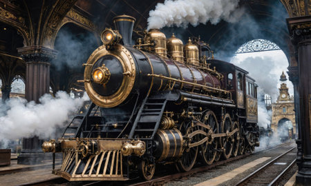 old steam locomotive, with smoke drifting from its chimney, created with generative ai
