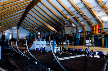 Busdorf, Germany - September 01, 2021: Ship in the Viking Museum Haithabu