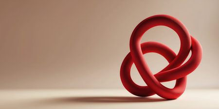 Two intertwined rope rings, one red and one blue, lie on a concrete surface, symbolizing unity and connection with a blurred natural background.