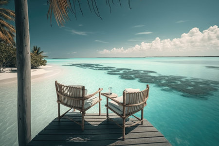 beach chair with tropical Maldives island beach and sea - holiday vacation background concep