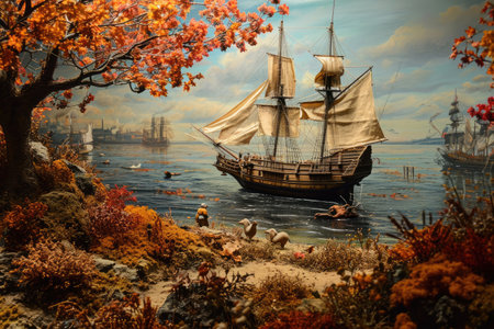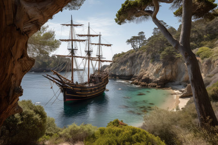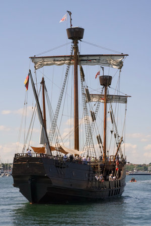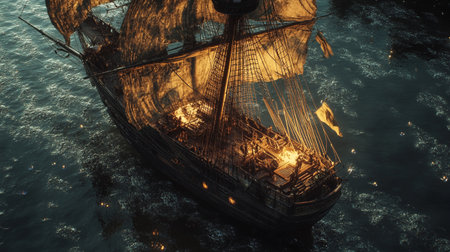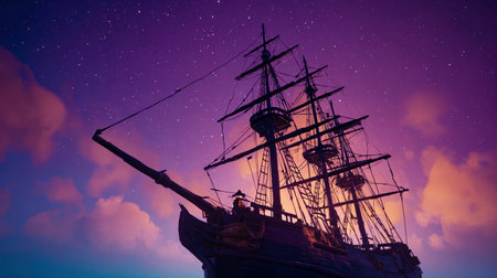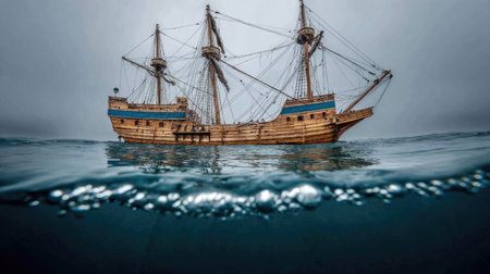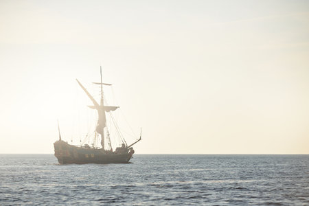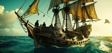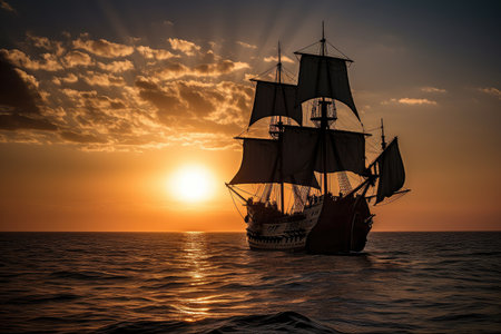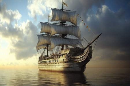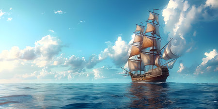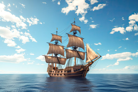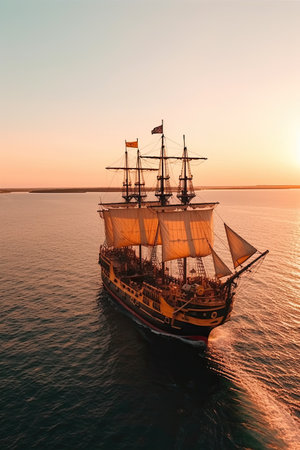 A grand and tall ship with billowing sails, symbolizing rich maritime history and embodying the spirit of adventure