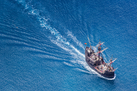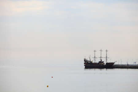 Pirate ship on the sea in a summer evening