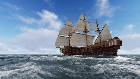 3D rendering of sailing ship