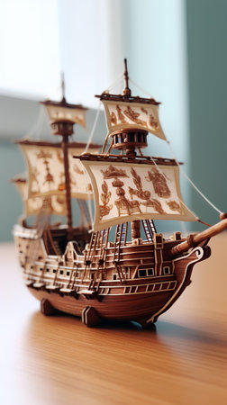 Close-up of Antique Model Sailing Ship with bokeh background