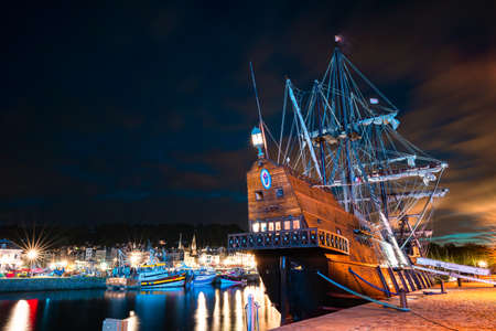 Mayflower II replica in moonlight, Massachusetts