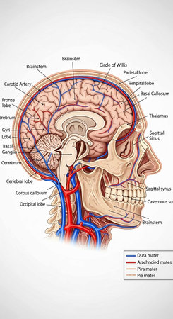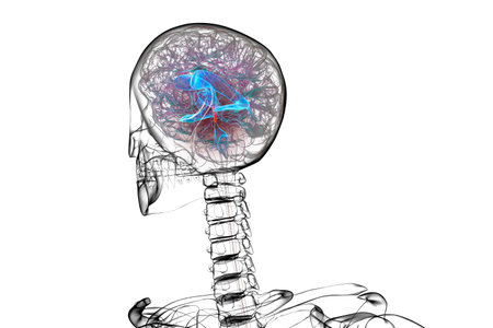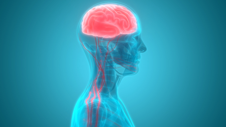 3D Illustration Human Brain Anatomy with Circulatory System For Medical Concept