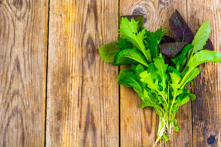 Fresh green salad with spinach,arugula,romaine and mizun