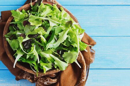 Mixed salad leaves. Healthy food background. Top view with copy space
