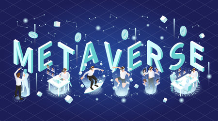 3D Isometric Flat Vector Conceptual Illustration of Metaverse Digital World , Virtual Reality andd Blockchain Technology