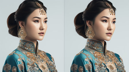 Portrait of a beautiful asian woman wearing traditional Chinese dress.