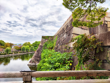 defensive stone wall and moat at nijo castle in kyoto