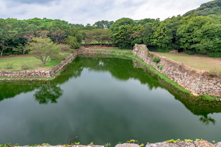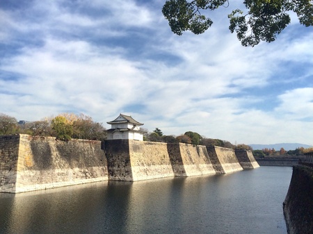 Fortification and ditch water around Osaka Castle for protection in Osaka Japan