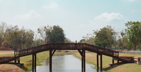 Antique old wooden bridge ancient style for cross the river