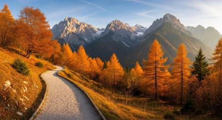 Autumn mountain landscape with warm colors and vibrant foliage