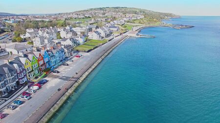 Colourful painted houses by the sea at Whitehead Bay Co Antrim Ireland