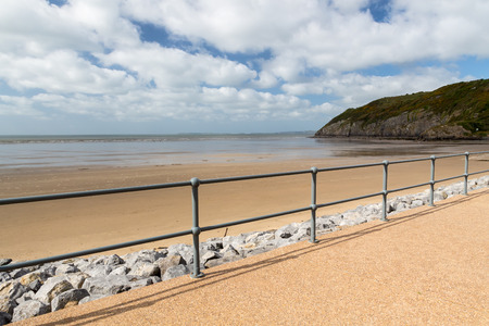 Editorial SWANSEA, UK - FEBRUARY 12, 2020: Aerial view of Langland Bay, a European Blue Flag awarded beach on the Gower peninsula, Swansea, South Wales, UK