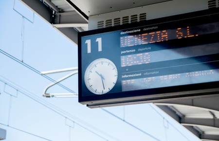 MESTRE, ITALY - JUNE 03: Sign with destiny to Venice at Mestre Train Station in Mestre, Italy