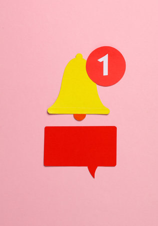 Speech bubble with notification bell icon on pink background