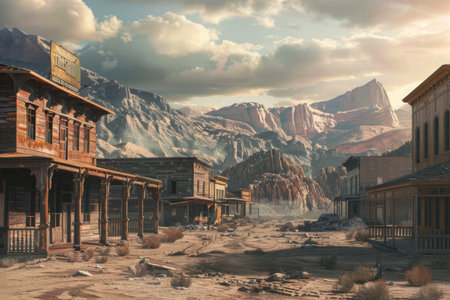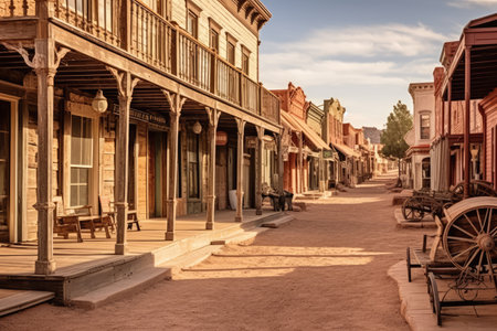 Picturesque view of a vintage wild west town, evoking the historic charm of the american frontier