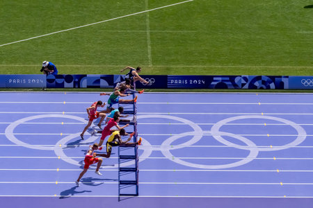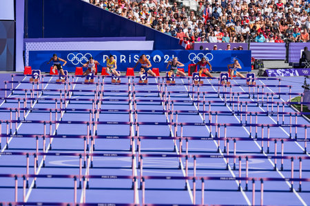 MAAYKE TJIN-A-LIM (NED) of Netherlands, competes in the Women's 100m Hurdles Repechage Round at the Stade de France Stadium during the 2024 Paris Summer Olympics in Paris, France.