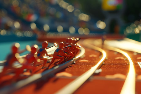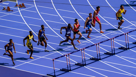 Vivid Scene of Male Athletes Speeding in a Sprint Race with Powerful Motion Blur Effect.