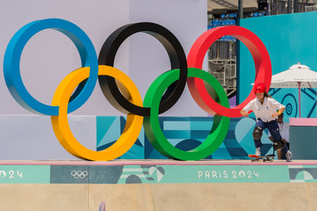 NANA TABOULET (FRA) of Team France competes in the Skateboarding Women's Park Prelims at the La Concorde 4 Stadium during the 2024 Paris Summer Olympics in Paris, France.