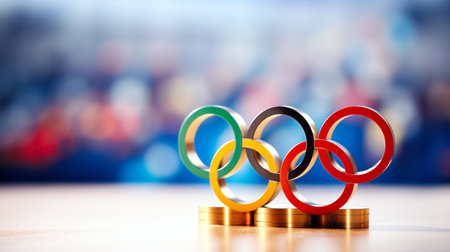 Olympic Rings Emblem on Minimal Pastel Background – Symbol of Global Unity and Sports