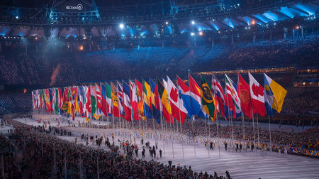 Athletes Celebrating Victory with Flags