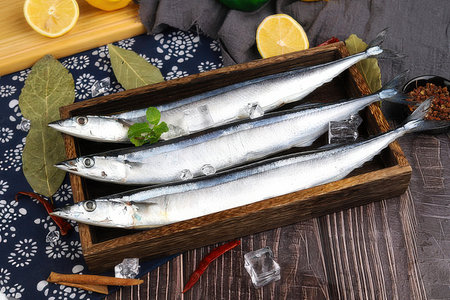 Fresh Japanese Sanma fish on leaf