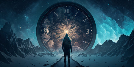 Concept of time and space, surreal fantasy artwork. Generative AI.