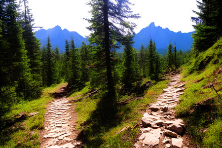 High Tatra mountains landscapes, forests, trees, rocks and plants, summer time