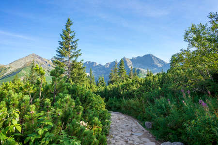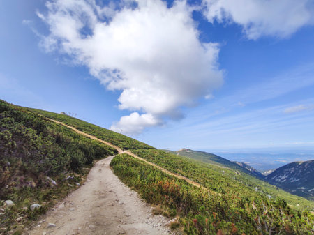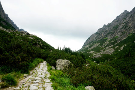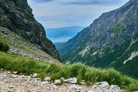 View of the hiking trail on Koprovsky peak in Hincova Valley. Slovak High Tatra Mountains.