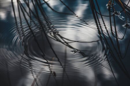 Wave ripple circles on the water surface with sky reflection
